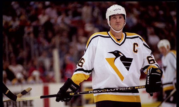 Undeniably one of the greatest players to ever play the game, Mario Lemieux wore a JOFA 366 helmet during the best seasons of his career; sharing credit for making the JOFA 366 a hockey icon. However, there is a twist. He would scratch the "3" off of the "366" bumper to make the helmet his own number, "66".